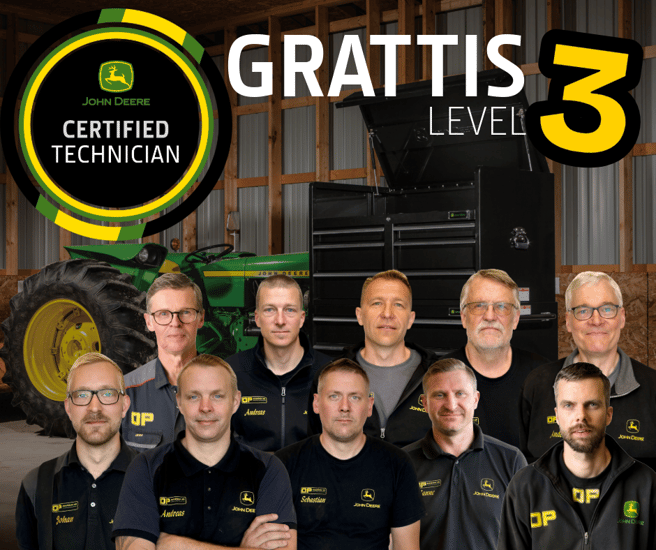 Vi är stolta över att kunna presentera våra John Deere Certified Technicians – servicetekniker som har genomfört och klarat John Deeres utbildning på Level 3, den högsta möjliga nivån i John Deeres utbildningsprogram.